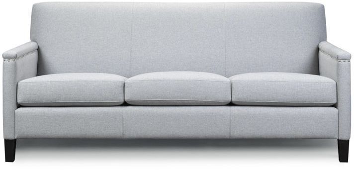 Tight-back seating is incredibly chic.Ultra-slender track arms are bordered inside and out by nailhead trim, perfect for those with a serious attention to detail. Eco-friendly construction. Certified sustainable, kiln-dried wood frame. Feather wrapped MicroGel soy-based polyfoam. Web and coil spring system. Benchmade in Canada. Available in fabric or leather.
