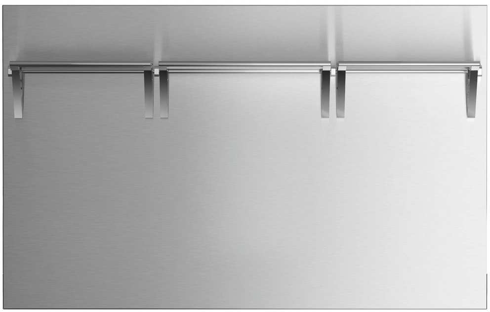 Stainless steel backguard with utensil rail and 2 plate racks for use with professional rangetops. This backguard is suitable for installation where a non-combustible surface is required.Read More
