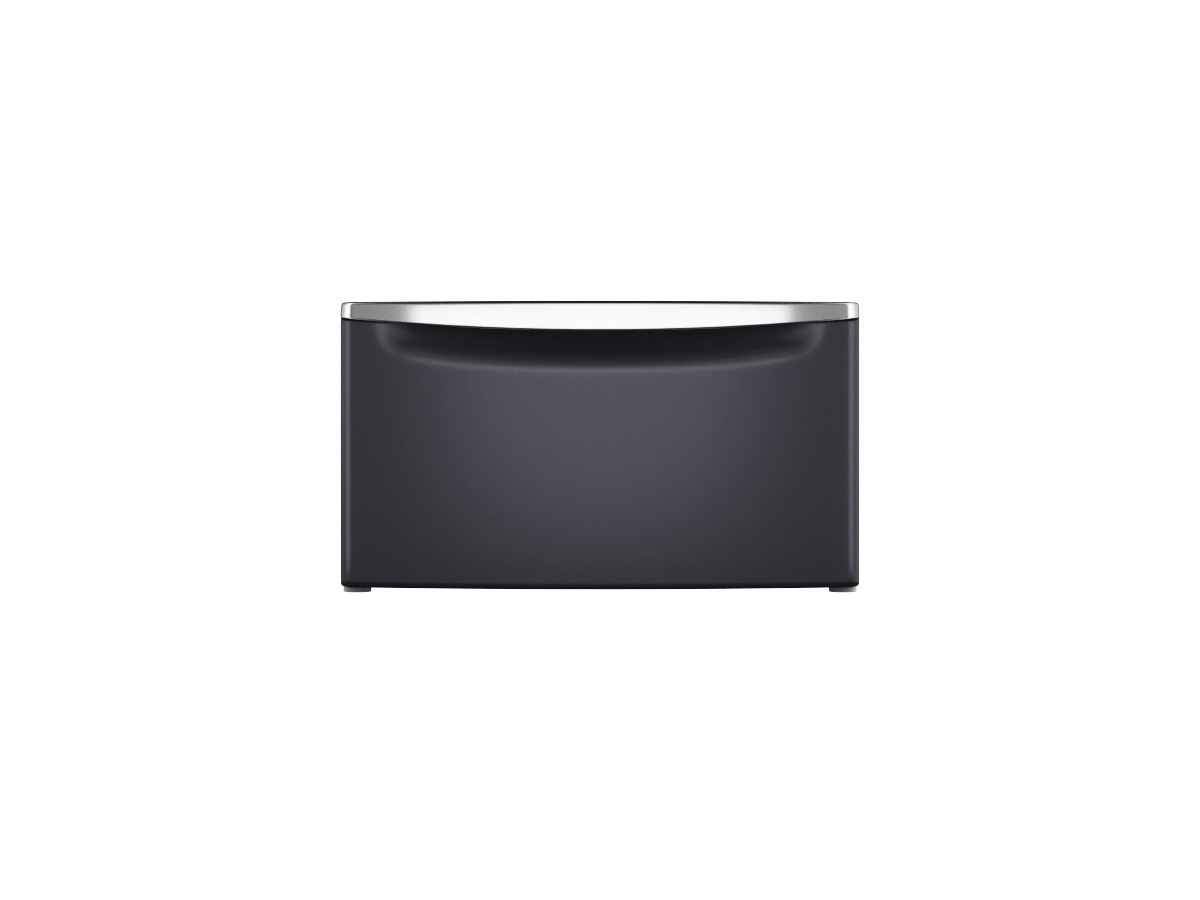 Pedestal drawer offers a convenient area to store laundry essentials