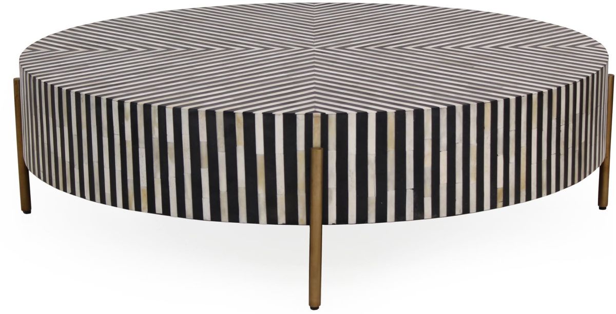 Simplistic and bold, the Chameau coffee table is an exercise in contrast, featuring a hypnotic art deco design. A veneer of white and black camel bone and resin adds a visual statement that contrasts with its simple construction and delicate brass-finished base.Read More