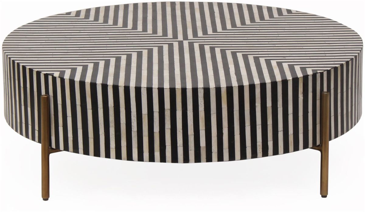 Simplistic and bold, the Chameau coffee table is an exercise in contrast, featuring a hypnotic art deco design. A veneer of white and black camel bone and resin adds a visual statement that contrasts with its simple construction and delicate brass-finished base.Read More