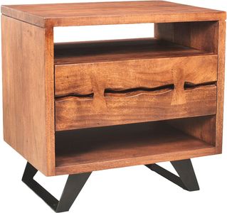 Crafted from solid acacia wood and supported by geometric steel legs, the Madagascar nightstand offers an aesthetically pleasing rugged appeal blending rustic and industrial design. Thoughtfully designed with a single drawer between two open spaces to cater to your bedside essentials, this piece is both practical and visually captivating.Read More