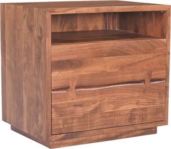 The Madagascar nightstand features solid, live-edge acacia construction, with a warm brown finish that highlights the natural wood grain and creates a warm, inviting look for your home. It includes 1 spacious drawer.Read More