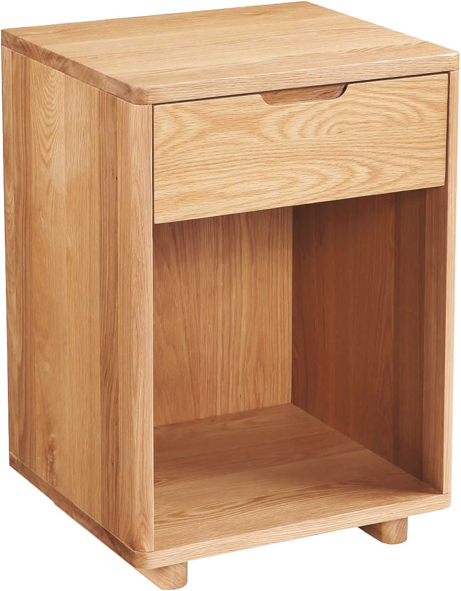 Easy, beautiful storage for the bedroom. Minimalism is captured naturally with the Osamu nightstand in solid white oak. Open for more, Osamu features an open display area for easy reach of your books, notes and treasures, while its single soft-close drawer will keep all nightly necessities on-hand.Read More