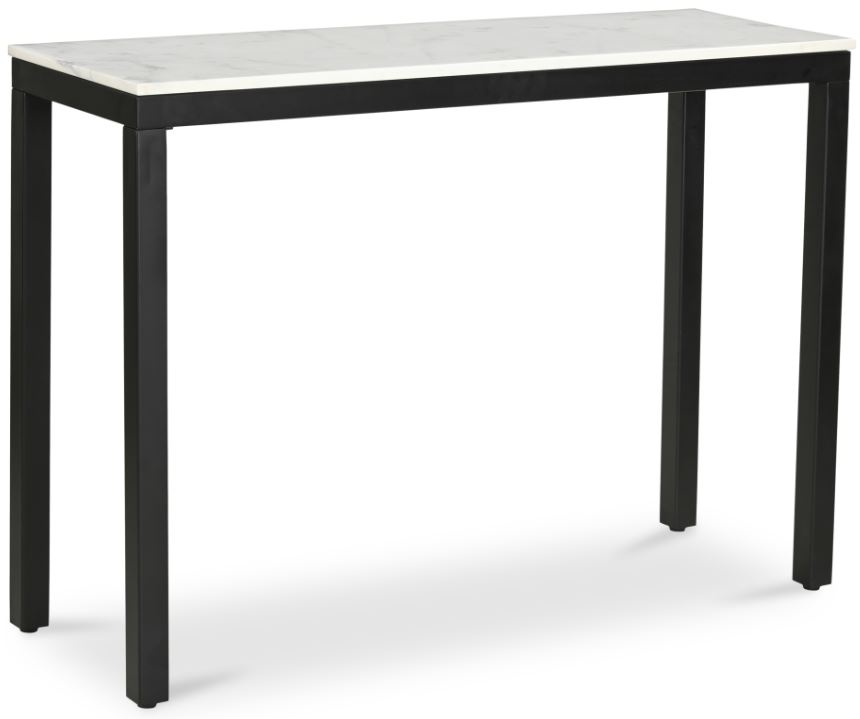 A simple, contemporary design that works in the entryway or home workspace, the Parson marble console table focuses on mixed material, pairing a natural white Banswara marble top with a sleek black powder-coated iron frame.Read More