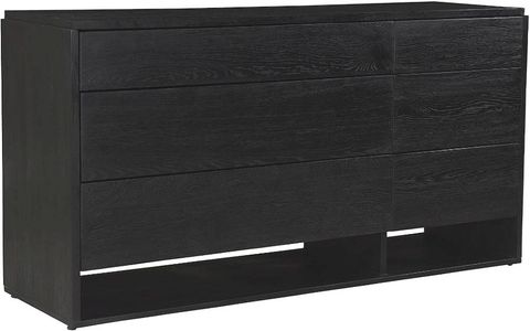 Bold in black, Quinton is a natural storage solution at home in any style. This solid oak dresser is generously fitted with 6 roomy mango wood drawers, 3 large and 3 small. Supported by a sleek iron sheet base, Quinton is all clean lines for a seamless, contemporary finish a handy storage essential.Read More
