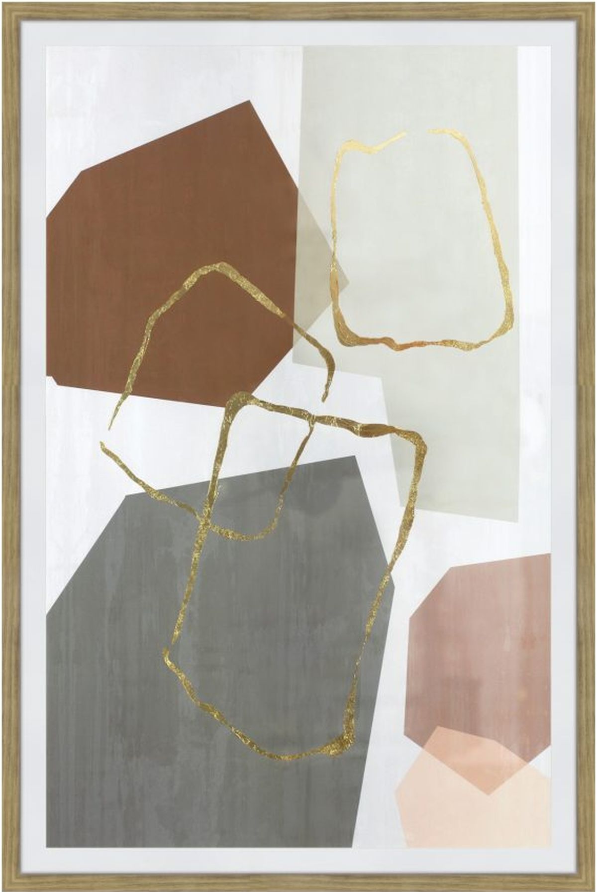Earthy colours and stone shades are finished with gold block layering. The misshapen pattern of this painting make the Speculate Wall Décor a unique piece to contemporary modern home décor.