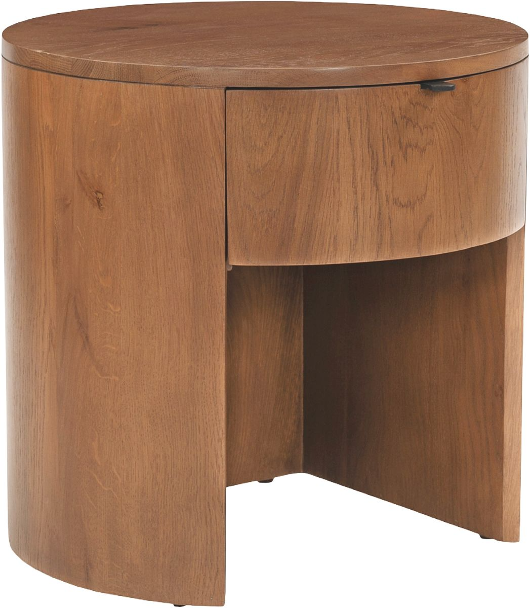 Curved and functional—just how we like it. The Theo one-drawer nightstand features a clean, rounded silhouette in solid oak with a warm brown finish. Its minimalist form brings soft geometry to modern bedrooms, while the natural wood grain and variation make each piece distinct.Read More