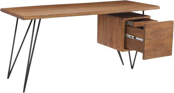Le bord organique du bois d'acacia de haute qualité fait du bureau Nailed un ajout magnifique à votre bureau. Sa grande surface met en valeur les variations naturelles du grain du bois et les nœuds qui rendent chaque bureau unique.En savoir plus