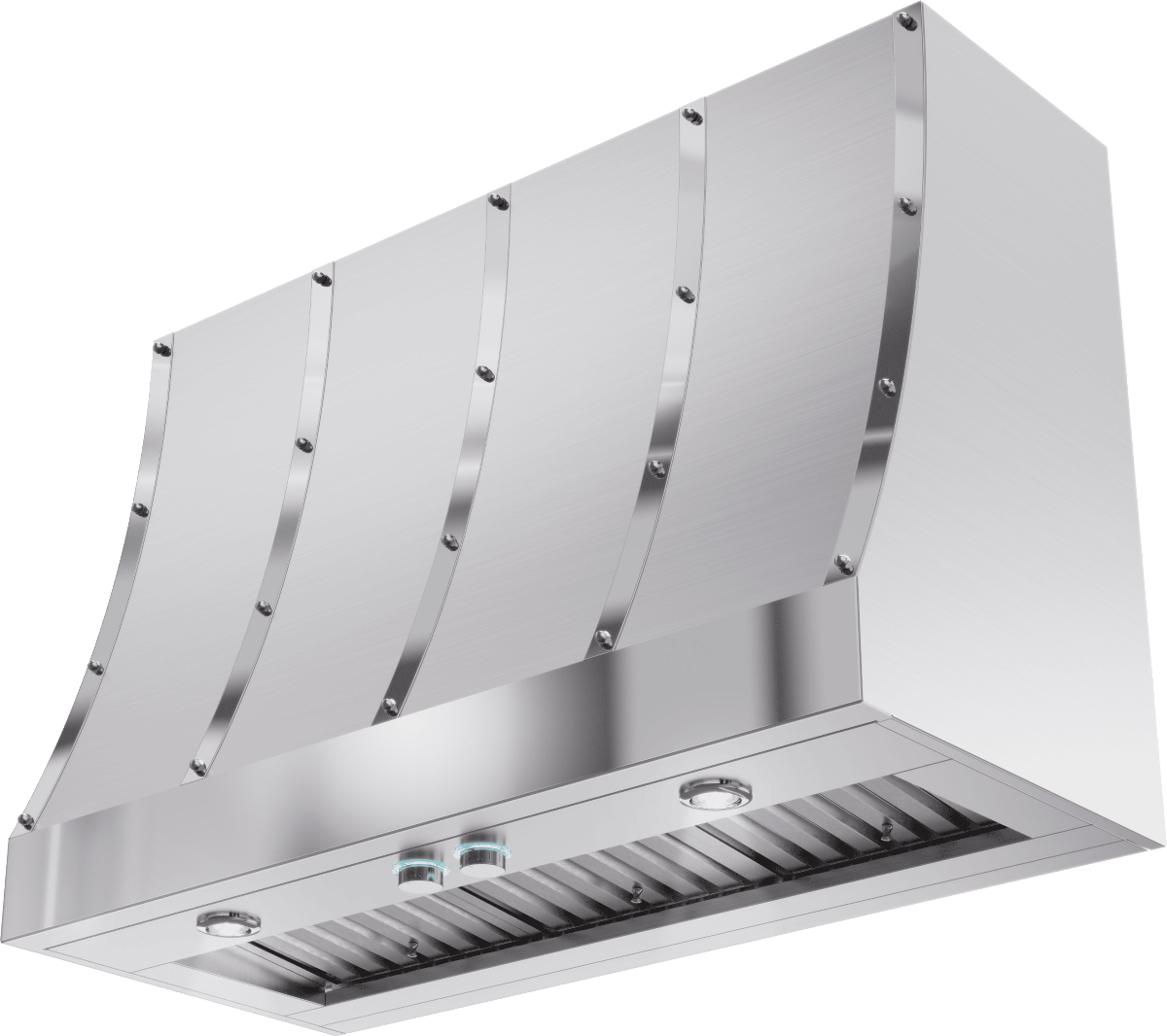 La structure robuste en acier inoxydable de la hotte Catania a une conception en forme de piazza, des pourtours avant sans soudure en acier inoxydable miroir, des bandes décoratives et des rivets offrant une image audacieuse tout en s'intégrant aux cuisines les plus glamour.En savoir plus