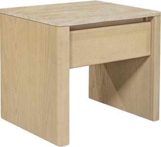 The Blake nightstand blends natural beauty and graceful design with its travertine top. Meticulously crafted, the base features a solid ash and bullnose-rounded edge. This soft design element adds a touch of elegance that is gentle and refined, harmoniously complementing the warm, earthy hues of the travertine top.En savoir plus