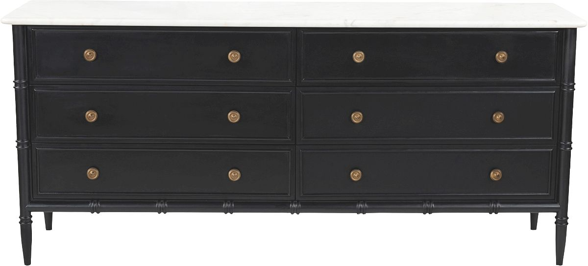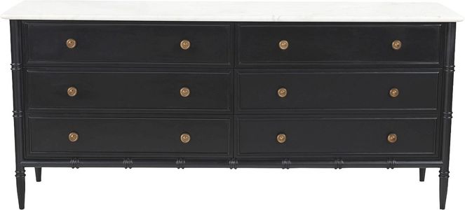 Inspired by the everyday grace of Provence style, the Eleanor 6-drawer chest showcases a classically graceful profile with distinctive turned details. Crafted from Mango wood, this piece is crowned with an expressive marble top and finished with solid antique finished brass finish handles, adding a touch of timeless sophistication and natural beauty.En savoir plus