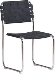 La chaise de salle à manger Moma est un meuble tendance qui allie le charme artisanal au chic industriel. Elle se caractérise par une structure robuste en fer noir, artistiquement agrémentée de sangles en cuir tressées à la main selon un motif classique en natté sur l'assise et le dossier.En savoir plus