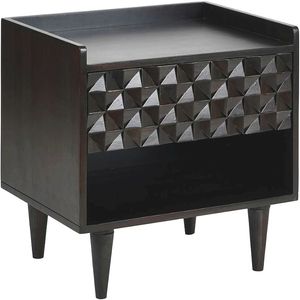 Crafted in solid sheesham wood with a black finish, the Pablo nightstand features an intricately designed front with each piece carefully arranged by hand. A single drawer with a safety stop provides ample storage, while a finished back allows this piece to float through the bedroom space.En savoir plus