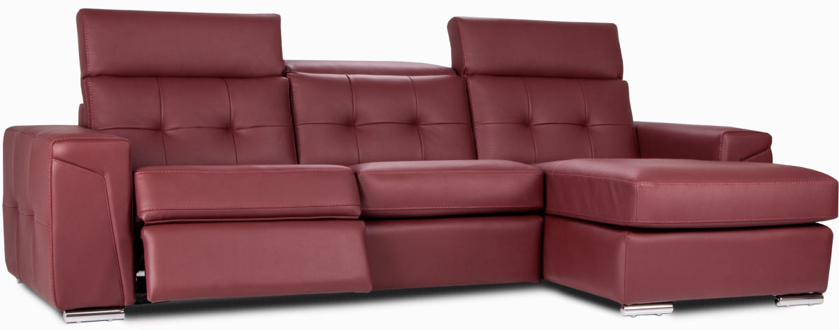 Ce sectionnel est doté d’appuie-tête ajustables manuellement, d’une inclinaison motorisée, d’un mécanisme protège-mur et de coussins de dossier attachés. Il est fait de mousse modelée, de mousse mémoire et de cuir, avec des coutures décoratives.En savoir plus