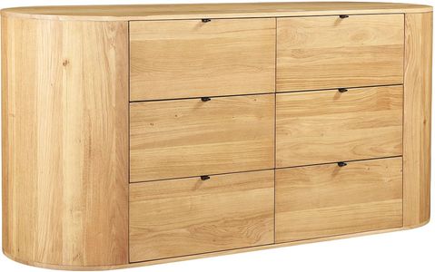Conçue pour le connaisseur de la maison moderne, la commode scandi-chic Theo a tout pour plaire. Cette commode à six tiroirs est fabriquée en bois de chêne massif, avec une silhouette arrondie et une finition semi-lustrée naturelle. Des détails très spéciaux tels que des tiroirs doublés de feutre à fermeture douce font de Theo un meuble de chambre à coucher essentiel et luxueux.Read More