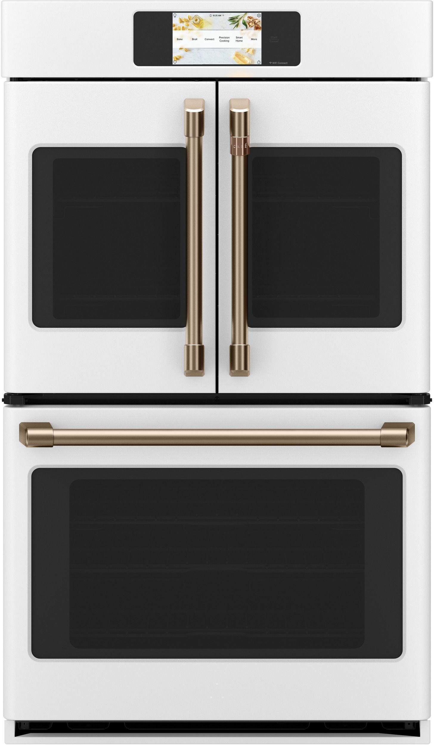 Les fours muraux doubles à porte française Café vous permettent de personnaliser vos combinaisons de finitions et de poignées pour un look professionnel qui vous est propre, tout en bénéficiant de deux fois plus d'espace de cuisson. La conception de la porte française du four supérieur offre une expérience ergonomique et, comme les deux portes s'ouvrent en même temps, vous pouvez tenir votre plaque à biscuits d'une main et ouvrir le four de l'autre. Et grâce à la fonction Precision Cooking intégrée aux deux fours, vos plats sont parfaitement exécutés à chaque fois.Read More