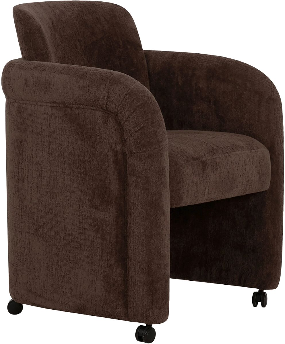 La chaise de salle à manger Mesto incarne l'essence même du confort douillet. Les accoudoirs rendent hommage aux styles traditionnels anglais avec leurs détails plissés, alliant savoir-faire classique et esthétique moderne, tandis que le revêtement doux et texturé ajoute une touche délicate et accueillante à n'importe quel espace.